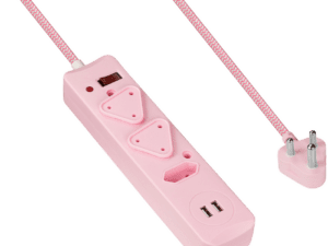 Switched 3-Way Surge Multiplug with Dual USB 2.4A & 0.5m Braided Cord - Pink