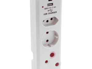 Switched 3-Way Medium Surge Adaptor - Schuko with Type-C + USB