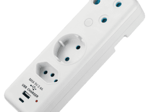Switched 3-Way Schuko Adaptor with Type C + USB