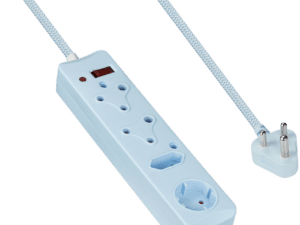 SWITCHED 4 Way Medium Surge Protected Multiplug 0.5M Braided Cord Blue
