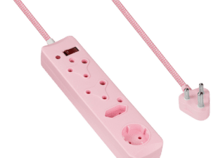 SWITCHED 4 Way Surge Multiplug 0.5M Braided Cord Pink