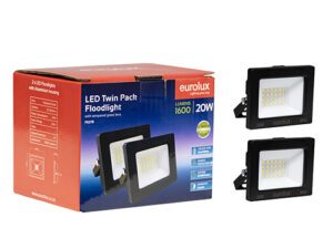 LED 20w Floodlight Black 4000K Twin Pack