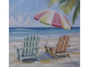 OIL PAINTING – 2 CHAIRS & UMBRELLA