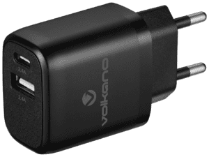 Volkano Cupla Series 5v/2.4a 12w Dual USB-A & USB-C Wall Charger - Black