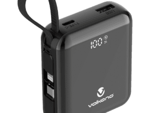 Volkano Solace Series 20 000 mAh Power Bank with Built-in USB-C & Lightning Cable - Black