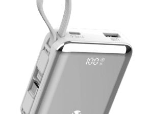 Volkano Solace Series 10 000 mAh Power Bank with Built-in USB-C & Lightning Cable - White & Silver