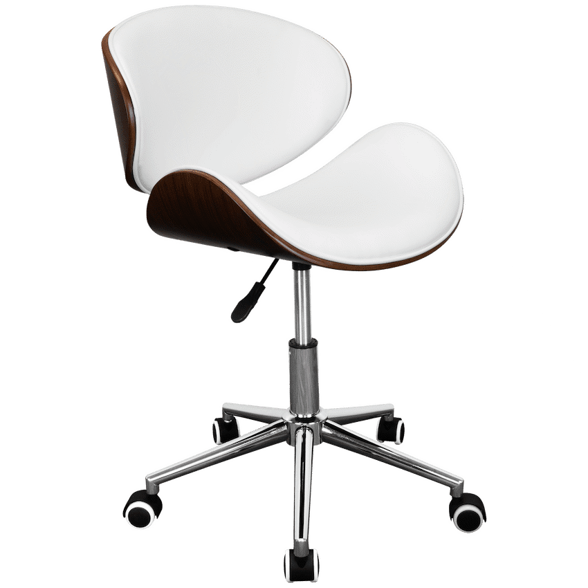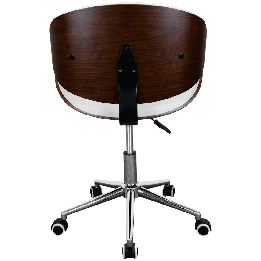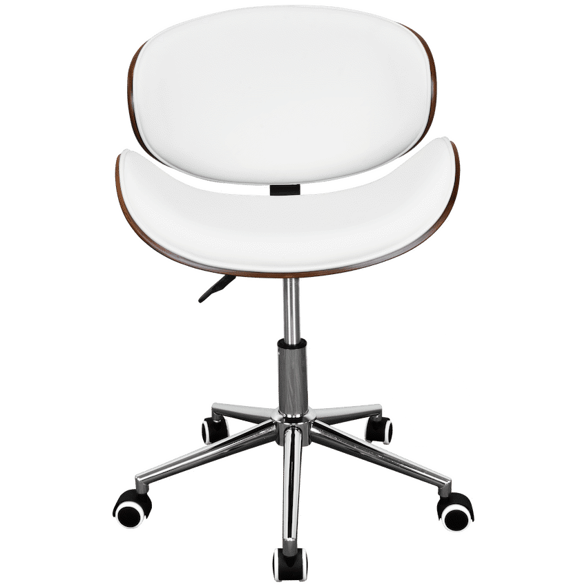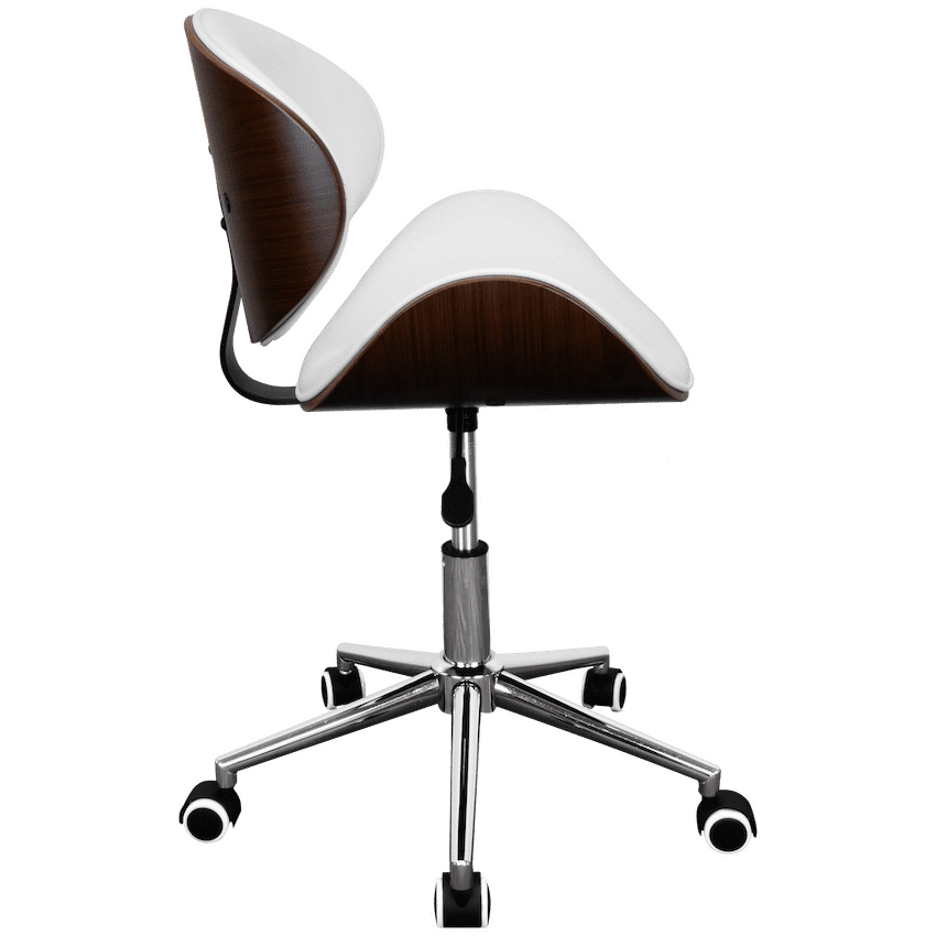 Everfurn Amos Mid Back Office Chair, White PU With Dark Wood, Chrome Base