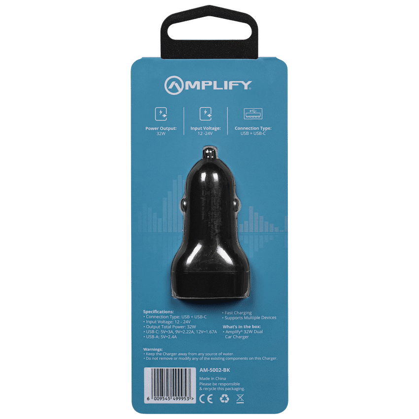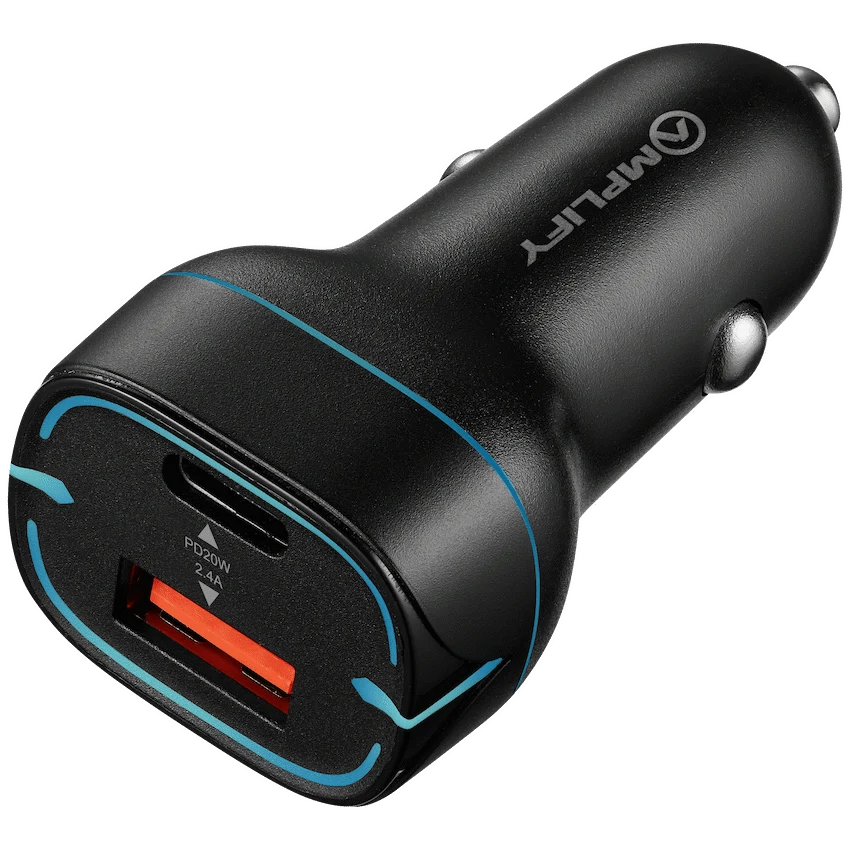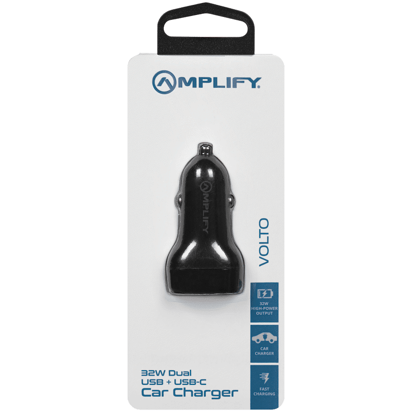 Amplify Volto Series Dual Car Charger 32W (Type-C + USB) – Black