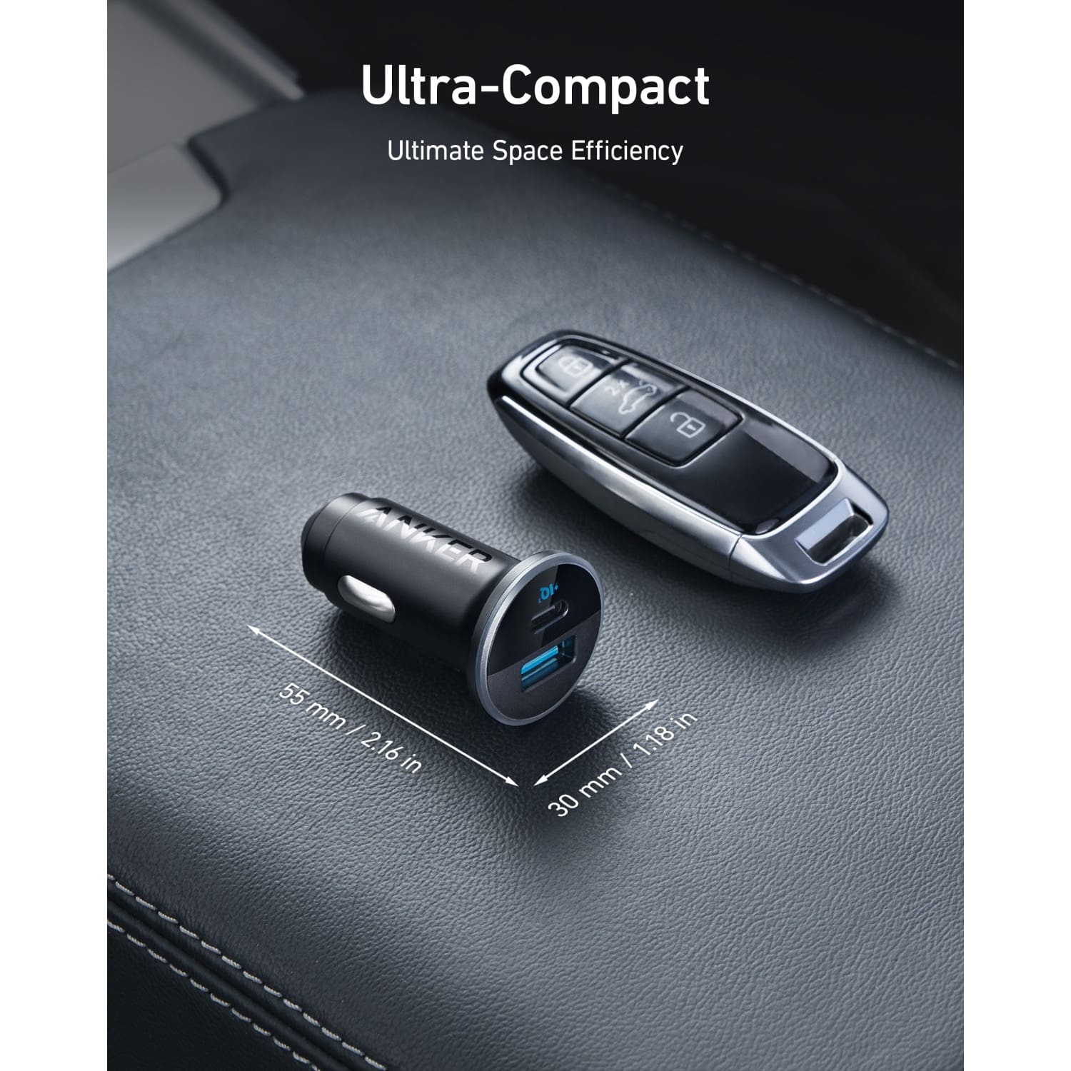 Anker 323 Car Charger (52.5W) – Dual Device, High-Speed Charging on the Go Power up while you drive with 52.5W of total output, featuring a 30W USB-C port and a 22.5W USB-A port to fast charge two devices at once. Stay safe with ActiveShield™ 2.0, which offers real-time temperature monitoring and protection for your devices. Designed to be compact and travel-ready, it blends seamlessly into your cars interior without adding clutter. Fast, safe, and space-saving-perfect for life on the move.