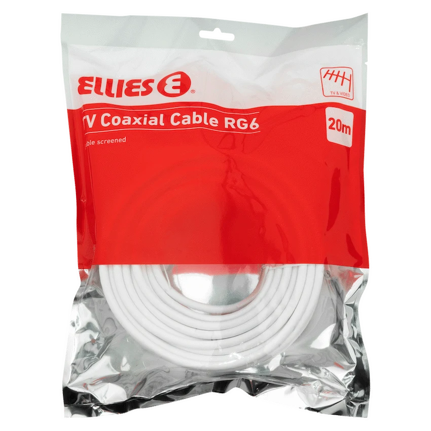 The Ellies 20m Coaxial Cable AC5C is designed to deliver reliable audio and video signal transfer for your TV, decoder, or DSTV setup. With its extended 20-metre length, this coaxial cable 20m gives you the flexibility to connect devices across rooms or neatly route cables without compromising on quality.Built by Ellies, South Africa’s trusted brand in electronics accessories, this cable ensures stable analogue transmission so you can enjoy uninterrupted picture and sound. Whether you’re extending your DSTV installation, upgrading your home theatre setup, or replacing an old cable, the Ellies coax cable is built to last and perform.