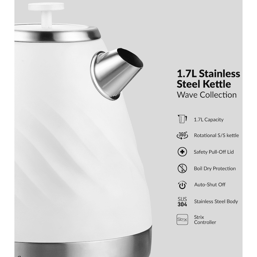 Experience effortless boiling with the Boden Stark 1.7L Stainless Steel Kettle, built for convenience, safety, and durability. Featuring a 360deg rotational base and stainless steel housing, this kettle is designed to fit seamlessly into any kitchen.360deg Rotational Stainless Steel Kettle – easy to place and lift from any angleSafety Pull-Off Lid – secure and easy to openWater Gauge – monitor water level at a glanceAutomatic Switch-Off – ensures safety when water boils