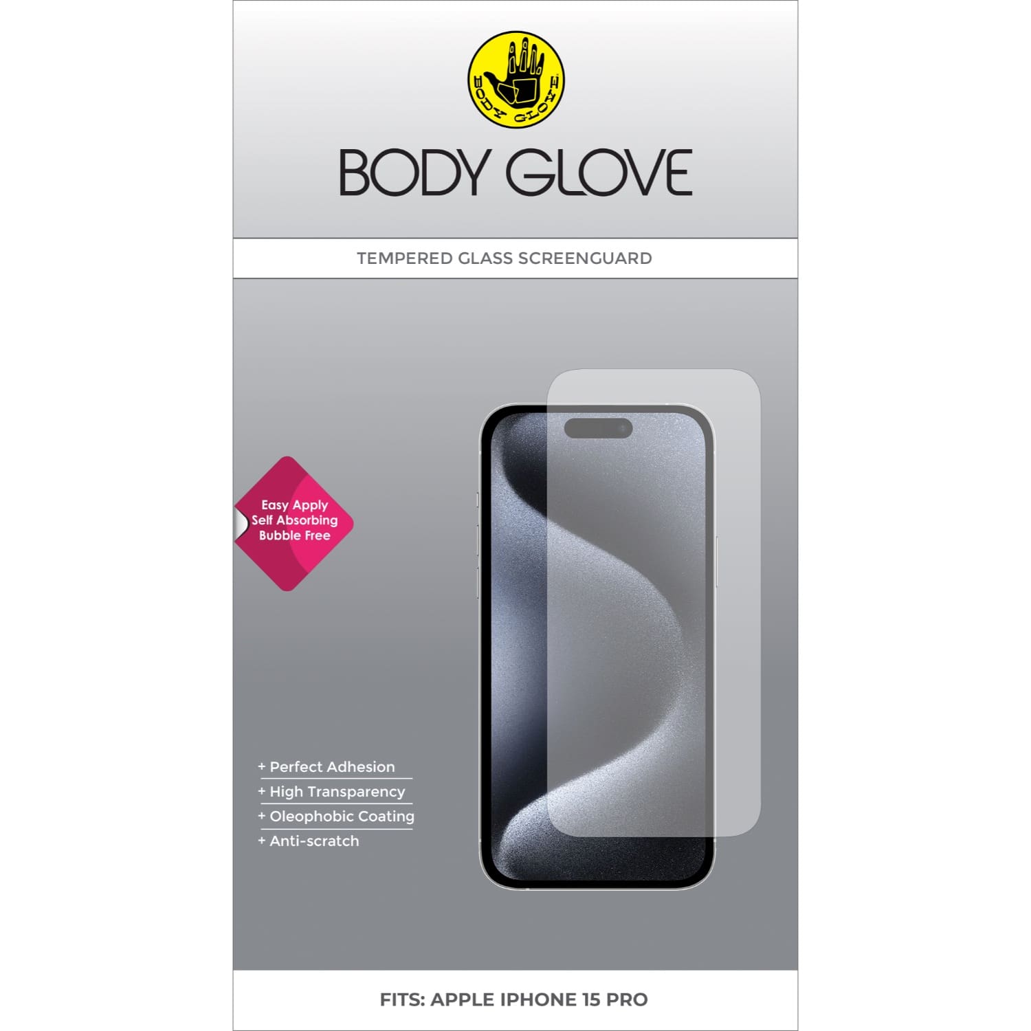 This Body Glove Tempered Glass Screen Protector for the Apple iPhone 15 Pro is easy to apply and offers 5 layers of protection against accidental knocks or drops. Specially processed glass protects the screen of the device from shocks and scratches.