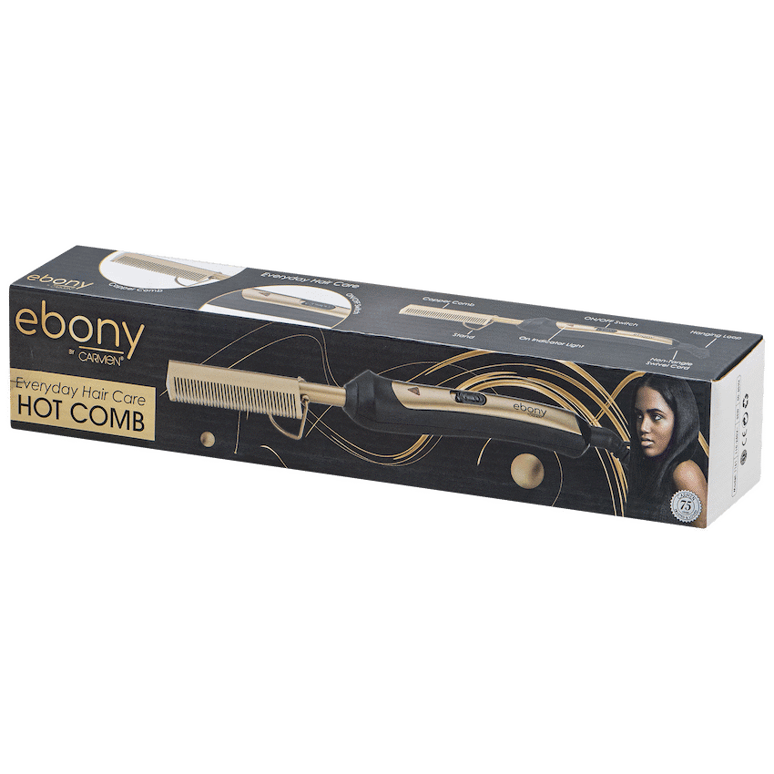 Perfectly designed for curly and frizzy hair, the Carmen Ebony Hot Comb helps you achieve sleek, smooth styles with ease. Equipped with an ON/OFF switch and indicator light for simple operation, plus a hanging loop for convenient storage, it’s the ultimate tool for effortless hair control.Ideal for Curly and Frizzy Hair TypesON/OFF Switch with Indicator Light for easy useHanging Loop for neat storage