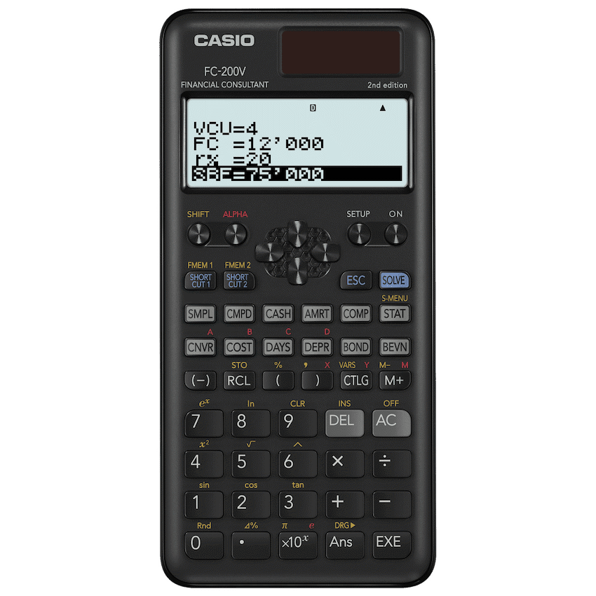 The Casio FC-200V Financial Calculator is a comprehensive and reliable tool designed for finance students, accountants, business professionals, and anyone needing quick and accurate financial analysis. It covers all essential functions including simple and compound interest, amortization, investment appraisal with cash flow analysis, and interest rate conversions. For business use, it can easily calculate cost, selling price, or margin, as well as handle day and date calculations for schedules and deadlines. Beyond the basics, this advanced model also supports statistical and regression functions, depreciation methods, bond calculations, and break-even point analysis, making it suitable for a wide range of financial and business applications. Designed with a clear display and user-friendly keys, it allows efficient data entry and quick navigation of functions. Whether used in classrooms, offices, or professional environments, the Casio FC-200V is a versatile financial calculator that simplifies complex calculations, improves accuracy, and saves valuable time.