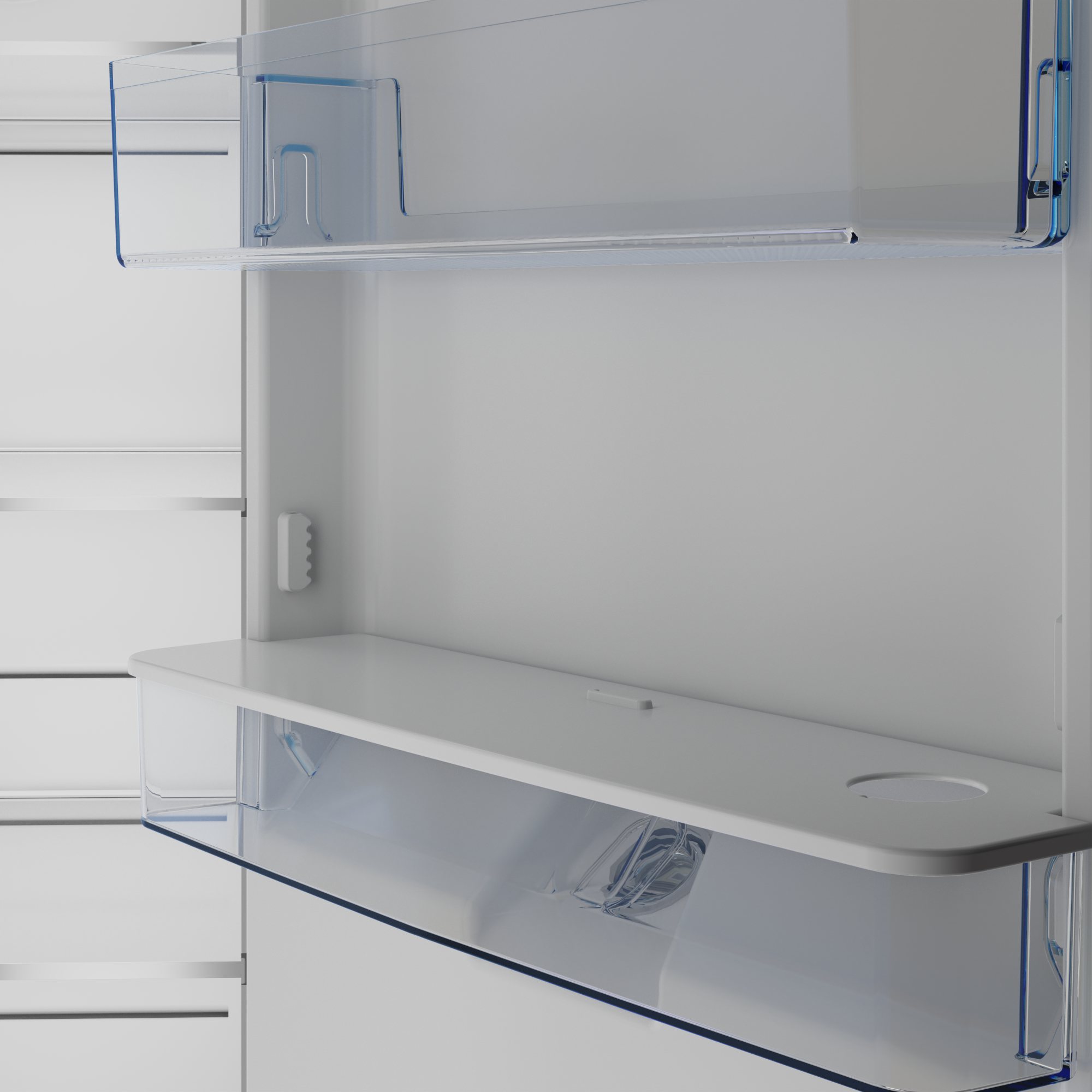 The Defy 614L Side-by-Side Fridge Freezer in Inox Steel features dual cooling, LED illumination, and integrated handle. Its no-frost system ensures efficient storage for fresh and frozen foods. Product Code: DFF563
