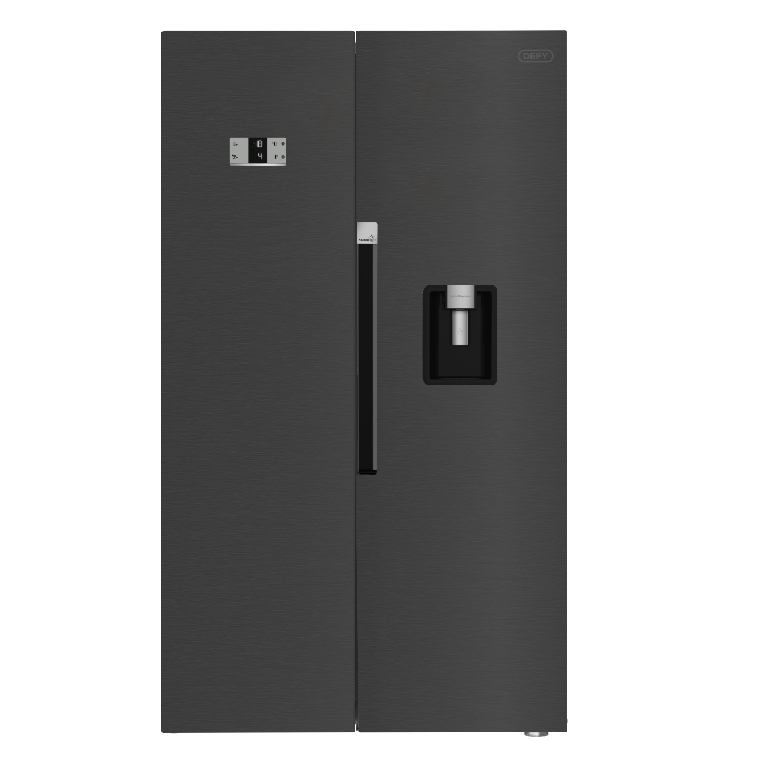 The Defy 618L Side-by-Side Fridge Freezer in Inox Steel offers dual cooling, LED illumination, and an integrated handle. Its no-frost system provides consistent freezing and fresh food storage. Product Code: DFF663