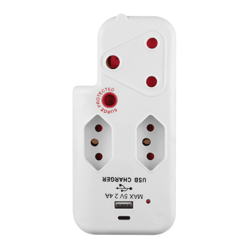 Simplify your power setup and charge devices on the go with the ELLIES 3-Way Medium Surge Adaptor with USB and Type-C ports. Designed for modern households, this space-saving 3-way surge adaptor with USB combines essential socket functionality with fast, built-in charging-perfect for phones, tablets, and other USB-powered gadgets. Featuring a 458 Joule medium surge protection rating, this adaptor helps protect your connected electronics from everyday voltage spikes. It includes one 3-pin socket and two SANS 164-2 sockets, all with safety shutters for peace of mind. The USB-A and USB-C ports deliver up to 2.4A, allowing you to charge two devices simultaneously without needing bulky wall chargers. Whether you’re powering appliances or charging your phone overnight, this Type C power adaptor is a smart, compact solution that brings safety and convenience to any plug point