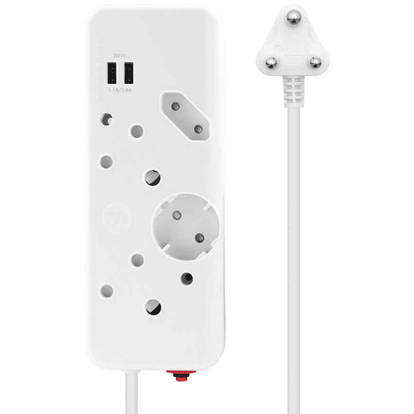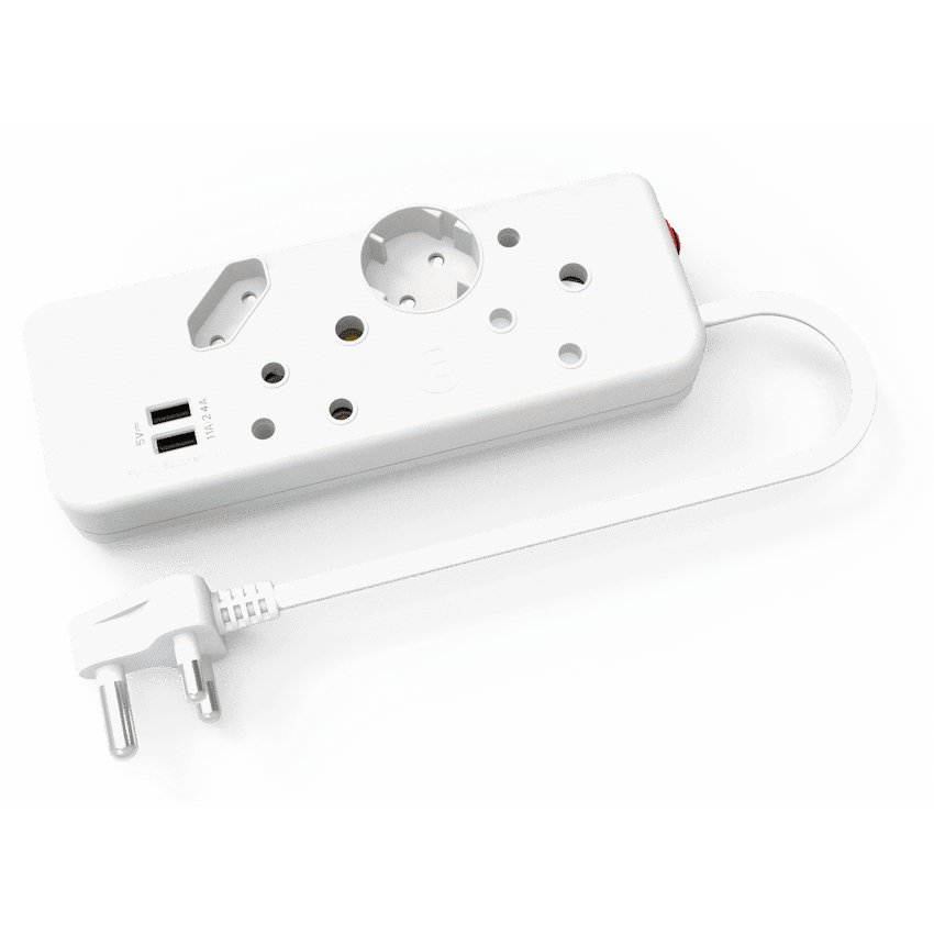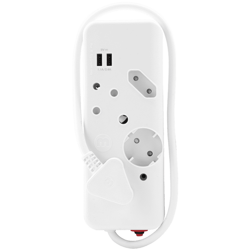 The Ellies 4-Way Multiplug with Dual USB offers a modern, all-in-one power solution for households and workspaces. With two standard 16A three-pin sockets, one 5A Euro socket, and one 10A Schuko socket, it provides versatile connectivity for a wide range of devices and small appliances.Adding extra convenience, this multiplug features two built-in 2.4A USB ports, ideal for charging smartphones, tablets, and other USB-powered devices without needing separate adapters. Its 0.4m cable with a 1.0mm thickness ensures durable, safe connections, while safety shutters add an extra layer of household protection.For added reliability, the multiplug includes an overload reset switch, safeguarding your devices from unexpected power surges. Rated at 250V, 16A, it delivers consistent performance while keeping everyday usage safe and efficient.Practical, compact, and designed for modern living, the Ellies 4-Way Multiplug is the smarter way to power and charge multiple devices at the same time.What’s in the Box:1 x Ellies 4-Way Multiplug with Dual USB 2.4A – 0.4m White