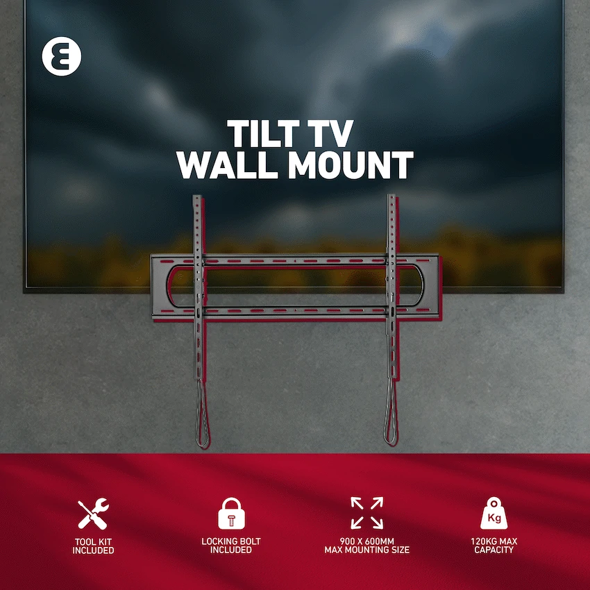 Mount your big screen with confidence using the Ellies Solid Series Tilt Universal TV Wall Mount, built tough for both flat and curved TVs. Designed for extra-large screens from 60″ to 120″, this heavy-duty mount supports up to 120kg and a maximum screen mounting size of 900 x 600mm.With a tilt range of +10deg to -10deg, you can easily adjust your TV to the perfect viewing angle while reducing glare. For added peace of mind, it includes a locking bolt, and the tool kit makes installation quick and simple.Strong, durable, and reliable, this wall mount is the perfect solution for creating a sleek, cinema-like setup in your home, office, or entertainment space.