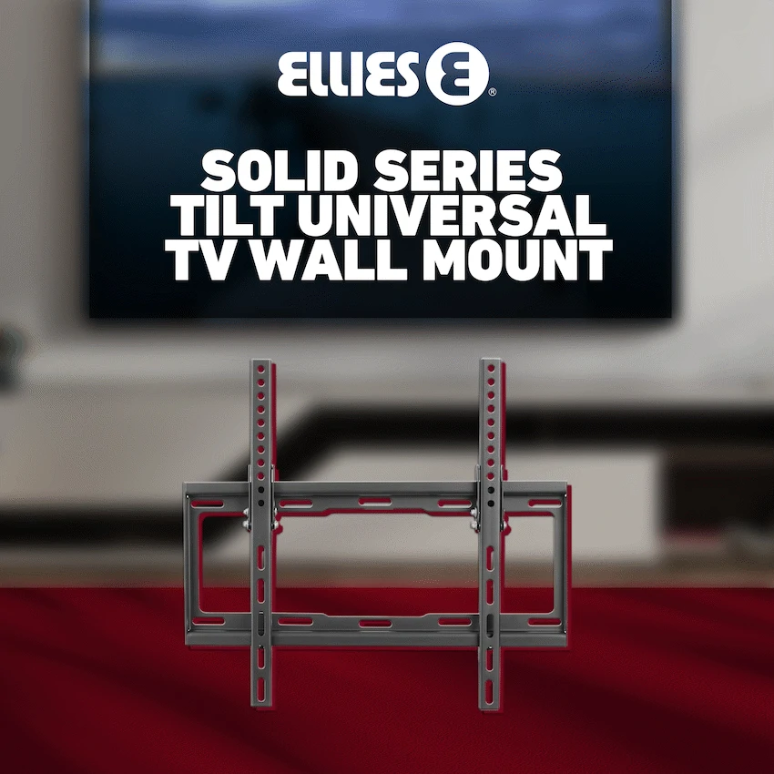 The Ellies Solid Series Tilt Universal TV Wall Mount is the ideal solution for mounting your flat or curved TV. Designed to fit screen sizes from 32″ to 55″, it is strong enough to hold up to 45kg and supports a maximum mounting size of 400 x 400mm.With its tilt function (0deg to -14deg), you can adjust your TV to reduce glare and enjoy the best viewing angle in any room. The mount also comes with a locking bolt for added safety and a tool kit to make installation quick and simple.Stylish, durable, and practical, this wall mount is perfect for creating a clean, modern look in your lounge, bedroom, or office while keeping your TV safe and secure.