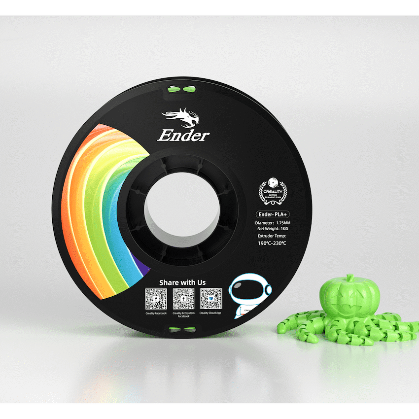 Ender PLA + filament is an upgraded version of traditional PLA, specifically designed to enhance the overall performance and print quality of 3D prints. Engineered with advanced materials and manufacturing techniques, this filament offers a host of improved features that make it an excellent choice for 3D printing enthusiasts.Key Features:- Superior Strength: Ender PLA+ boasts increased tensile strength and higher impact resistance, resulting in more robust and durable printed objects compared to regular PLA.- Enhanced Flexibility: This filament exhibits improved flexibility, reducing the risk of prints becoming brittle and allowing for more versatile applications.- Reduced Warping: Ender PLA+ has reduced warping tendencies, minimizing the chances of print failures and ensuring smoother printing experiences.- Excellent Layer Adhesion: With superior layer adhesion, the printed models using Ender PLA+ filament showcase improved surface quality and structural integrity.- Precise and Consistent Printing: Its reliable diameter consistency and low tolerance levels contribute to precise and consistent 3D printing, reducing the risk of nozzle clogging.- Vibrant and Vivid Colors: Ender PLA+ filament comes in a wide array of vibrant colors, ensuring that your prints are visually appealing and eye-catching.- Eco-Friendly: Like traditional PLA, Ender PLA+ is derived from biodegradable and eco-friendly materials, making it a more sustainable choice for environmentally-conscious users.- Compatibility: Designed to be compatible with a variety of 3D printers, Ender PLA+ filament can be seamlessly used across multiple machines for seamless printing experiences.What’s in the box1 x User Manual1 x Ender PLA + filament 1Kg