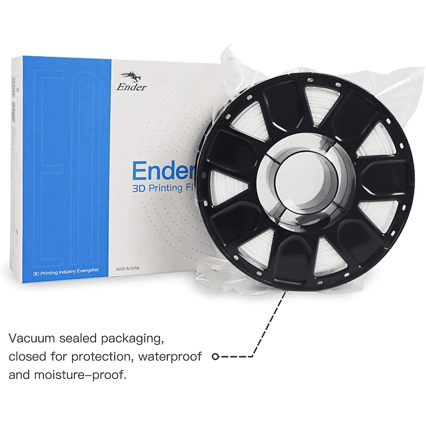 “Introducing Creality Ender PLA White Filament: Unleash Your Creativity with High-Quality 3D Prints!Elevate your 3D printing projects to new heights with the Creality Ender PLA White Filament, a premium-grade filament that combines superior quality and versatility. Whether you’re a professional designer, an educator, or a passionate hobbyist, this filament is the perfect choice to bring your creations to life with stunning detail and precision.Unmatched Print Quality:Experience exceptional print quality with the Creality Ender PLA White Filament. Crafted with care and precision, this filament ensures smooth and consistent extrusion, resulting in flawless prints that showcase intricate details and crisp edges. Say goodbye to imperfections and layer inconsistencies, and hello to stunningly beautiful 3D models that will captivate your audience.Vibrant White Finish:Achieve a pristine white finish like never before with the Creality Ender PLA White Filament. Its pure white color adds a touch of elegance and professionalism to your prints, making them stand out from the crowd. Whether you’re creating architectural models, artistic sculptures, or functional prototypes, this filament delivers a clean and vibrant appearance that enhances the overall visual impact of your designs.Easy to Print and Reliable:Designed for hassle-free printing, the Creality Ender PLA White Filament offers excellent compatibility with a wide range of 3D printers. Its consistent diameter and low-tolerance manufacturing ensure smooth filament flow, reducing the risk of clogs or jams. Experience peace of mind as you enjoy reliable, uninterrupted printing sessions, allowing you to focus on unleashing your creativity without any technical distractions.Environmentally Friendly:Made from high-quality biodegradable materials, the Creality Ender PLA White Filament is an environmentally friendly choice for conscious creators. It emits low levels of odor during printing and does not release harmful particles, making it safe to use in various settings, including schools, homes, and offices. Join the movement towards sustainable manufacturing and enjoy guilt-free 3D printing with this eco-conscious filament.Wide Compatibility:The Creality Ender PLA White Filament is compatible with a wide range of 3D printers, making it a versatile choice for all your printing needs. Whether you’re using a Creality printer or another popular brand, you can trust this filament to deliver consistent results and seamless compatibility. Enjoy the flexibility of choosing the printer that suits your workflow best while achieving exceptional print quality every time.Unleash Your Imagination:Let your imagination run wild and bring your designs to life with the Creality Ender PLA White Filament. Whether you’re creating functional prototypes, artistic sculptures, or educational models, this filament provides the perfect canvas for your creativity. Stand out from the crowd with stunning white prints that capture attention and showcase your skills as a designer, artist, or engineer.Elevate your 3D printing experience with the Creality Ender PLA White Filament. Unlock a world of possibilities, create breathtaking models, and enjoy the satisfaction of bringing your ideas to life with exceptional quality and precision.””What’s in the boxCreality Ender PLA Filament – White