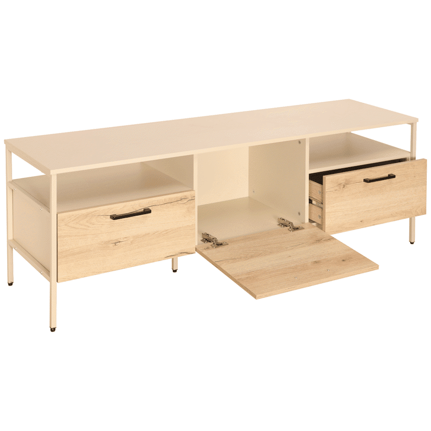 Everfurn Ellen TV Stand – Melamine – Powder-Coated Steel Frame – 2 Drawers – Storage Cabinet