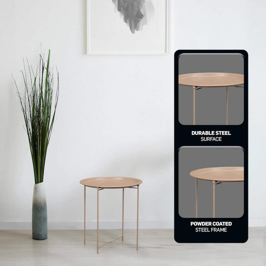 Everfurn Nala Side Table Beige, Painted MDF, Steel Frame, 2 Pack