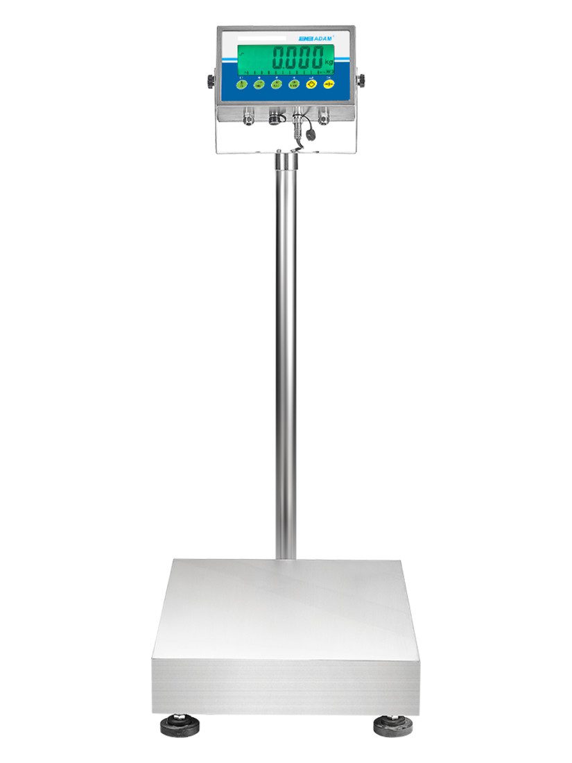 | Features | IP68-rated for protection against water and dust | Backlit display changes colour for quick notification of checkweighing limits | Large, grade 304 stainless steel pan allows easy cleaning | Rugged stainless steel construction for ultimate durability | Heavy-duty rubber feet ensure stability of unit | Sealed keypad protects against dirt and spills | Colour-coded keys facilitate quick recognition of the most frequently used buttons | RS-232 interface provides speedy connection to computers and printers | Rechargeable battery included for operation almost anywhere | Programmable auto power-off to save energy | External calibration allows for verification and adjustment with weights | Hold function freezes the displayed weight, allowing time to elapse without losing the result | Parts counting with preset sample sizes | Preset tare function speeds the process of repetitive weighing | Selectable digital filtering for animal/dynamic weighing enables consistent results for moving subjects | 1:1,000,000 Internal counting resolution for precise results | Adam Connect compatible for Bluetooth® data transfer to printers and PCs|A 5-year warranty means quality assured for years of use. |