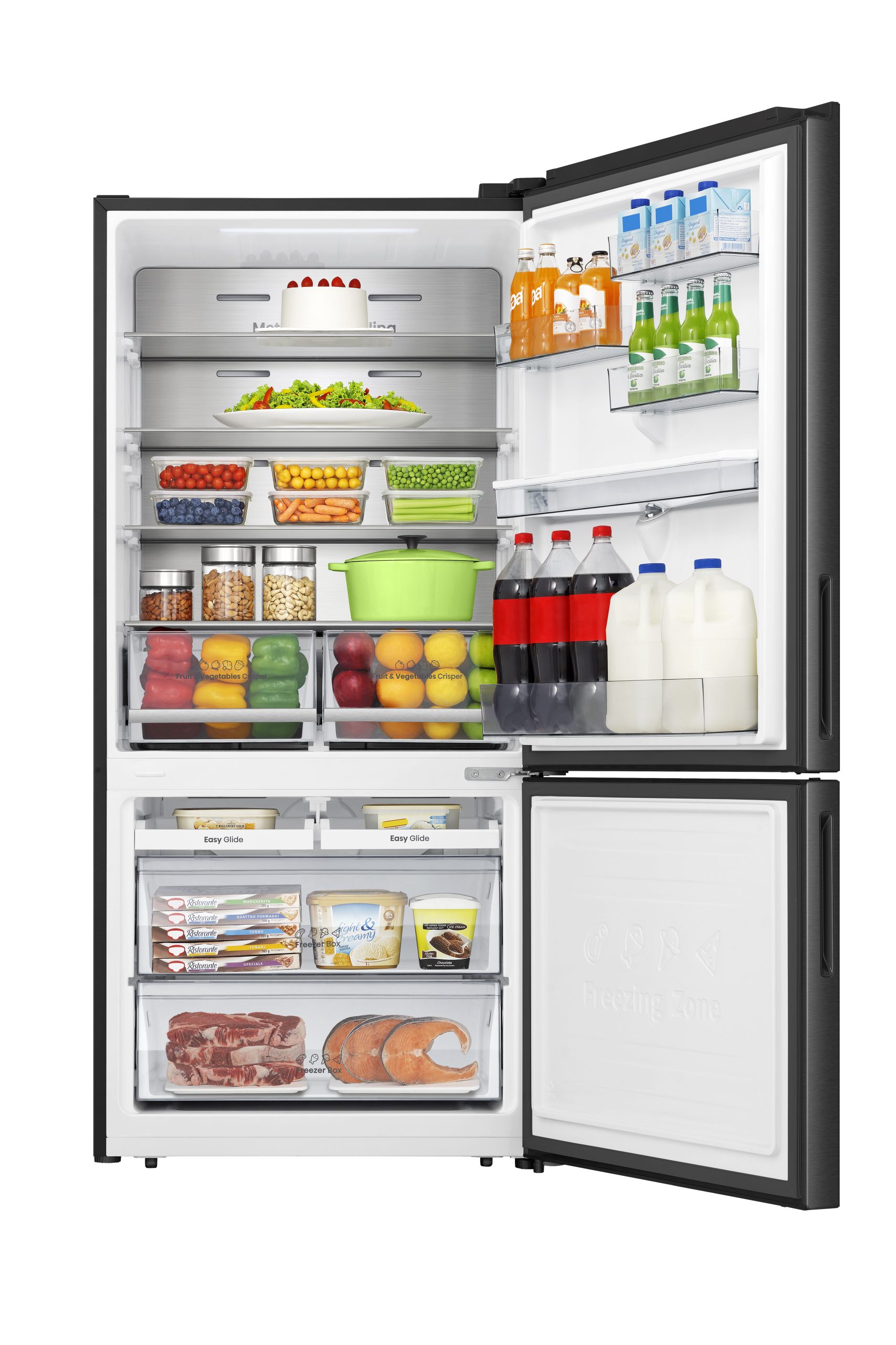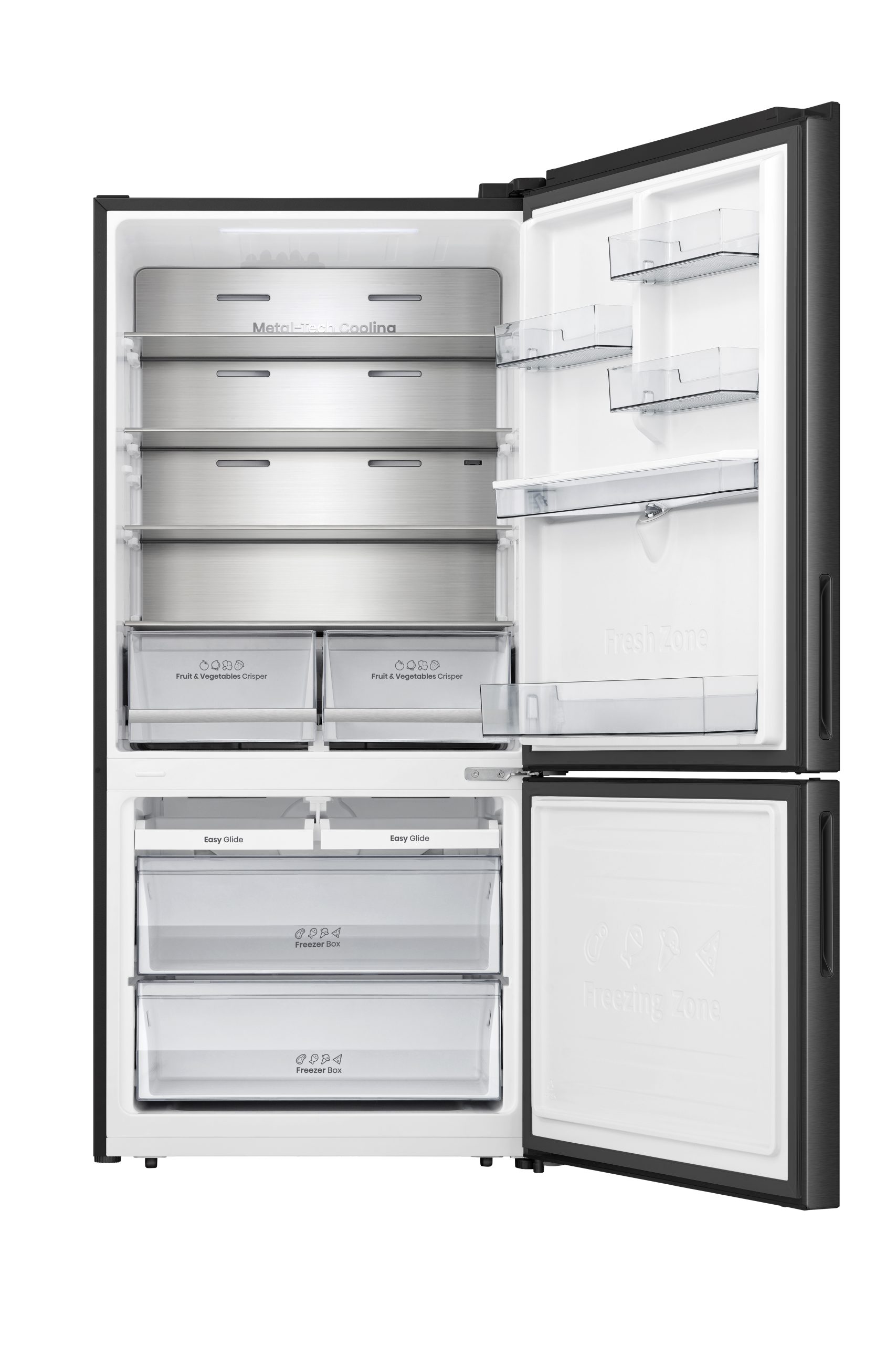 With a bottom-mount layout, this model places fresh food at eye level for ease, while still offering generous freezer capacity below. Great for homes wanting a premium finish and advanced cooling control._x000D_