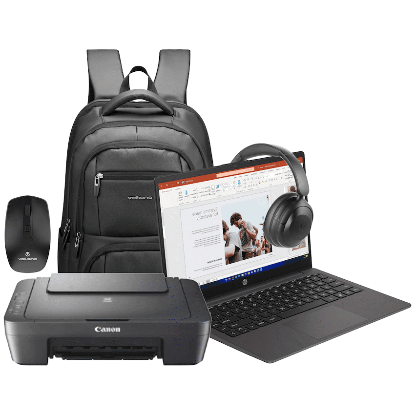 The HP 245 G10 delivers reliable performance for everyday work, study and home use with UMA Athlon 7120U, 8GB of RAM, a fast 256GB SSD and Windows 11 Home for smooth multitasking and quick startup. Designed for productivity, this bundle includes the Canon Pixma 3?in?1 Inkjet Printer for printing, scanning and copying, the Volkano Jayden 15.6″ Laptop Backpack for safe and convenient portability, the Volkano Granite Series Rechargeable Wireless Mouse for effortless navigation, and the VolkanoX Halo ANC Bluetooth Headphones for rich, immersive sound. This complete package offers everything needed for an efficient home, school or office setup.