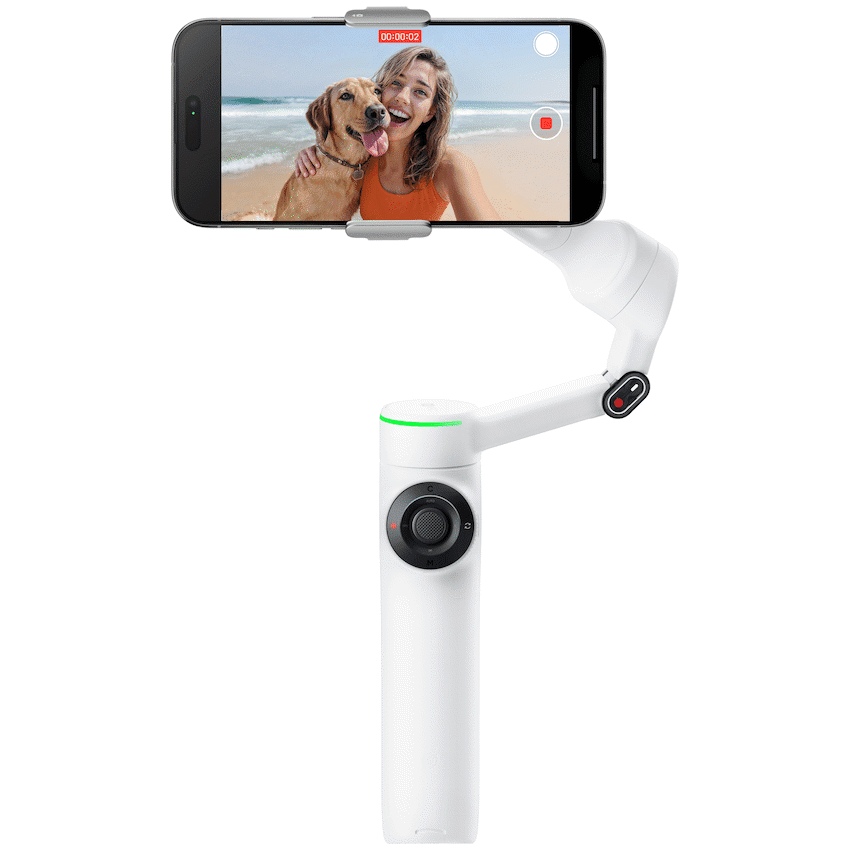Capture cinematic magic with your smartphone using the Insta360 Flow 2 Pro. This AI-powered gimbal stabilizer is your all-in-one solution for creating professional-quality videos on the go.The Flow 2 Pro features a revolutionary Deep Track 4.0 system that uses AI to flawlessly follow your subject, whether it’s a person, pet, or a group. With Apple DockKit integration, iPhone users get seamless native tracking directly in the camera app and over 200 other iOS apps, including FaceTime and social media platforms.Beyond its advanced tracking, the Flow 2 Pro is built for versatility. It includes a robust 3-axis stabilization to eliminate shaky footage and an innovative all-in-one design with a built-in selfie stick and tripod. Its ergonomic handle provides a comfortable grip, while the new Free-Tilt Mode allows for creative, dynamic shots like crane and low-angle movements. With a long-lasting battery, you can film all day and even use the gimbal as a power bank to charge your phone.