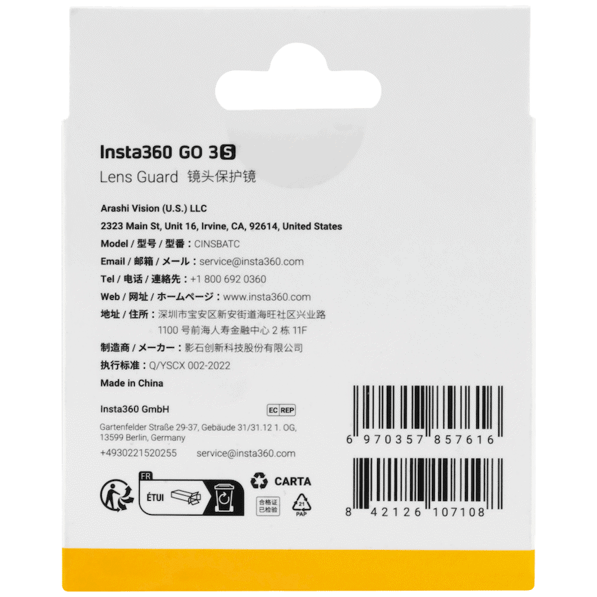 Protect your Insta360 GO 3S camera lens with this pack of two premium screw-on lens guards, crafted from hardened glass with a translucent anti-fog coating. The curved glass design preserves image quality while shielding your lens from scratches, dust, and impacts. Easy to install and securely fastened, these lens guards ensure your camera stays clear and ready for action, even in challenging environments. Essential for maintaining sharp, vibrant 4K footage and underwater shooting-remember to screw on tightly for waterproof protection.