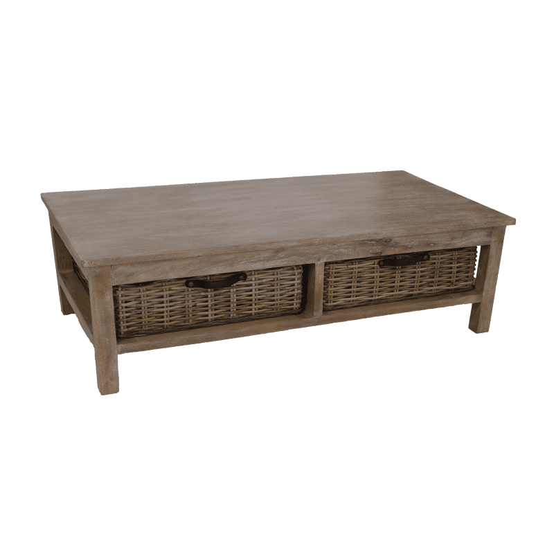White Washed Mango Wood with Rattan Baskets