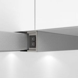 The telescopic cooker hood: practically disappears into your upper cabinet, giving you a sleek kitchen front.