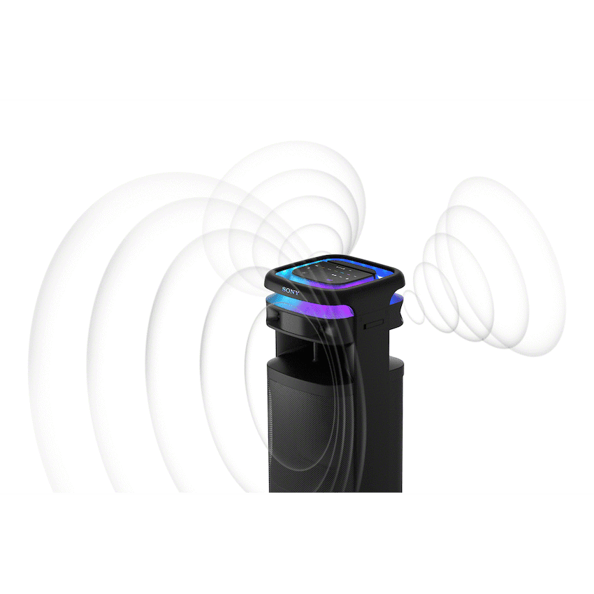 Elevate your party experience with the Sony ULT TOWER 10 Party Speaker Black. This high-performance speaker is designed to deliver an immersive audio experience, complete with vibrant lighting and advanced sound features that will make any event unforgettable. Turn every moment into a celebration with the Sony ULT TOWER 10 Party Speaker Black. Whether you’re hosting a lively event, enjoying a movie night, or simply relaxing with friends, this speaker ensures an exceptional audio and visual experience. 360o Party Sound carries powerful sound to every corner of the room. Four tweeters deliver clear sound to both the front and rear of the speaker, with two mid-range speakers for vocal clarity. Feel the bass sound, thanks to the large X-Balanced Speaker Unit. Together, they let everyone in the room feel the power of the music, wherever they are.