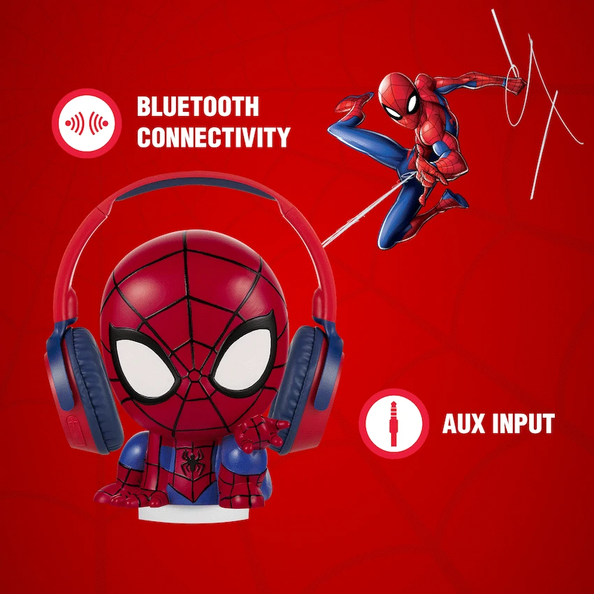 Unleash your child’s inner superhero with the Marvel Spider-Man Bluetooth Headphones and Soft Touch Light Combo. This powerful duo combines kid-safe, wireless headphones with a glowing soft-touch Spider-Man light, making it ideal for music, stories, or winding down after a busy day of adventure.Designed with young fans in mind, the Bluetooth headphones feature a foldable design, built-in mic, and both wireless and AUX connectivity. Whether your little hero is listening to web-slinging soundtracks or chatting with friends, they’ll love the comfort and versatility. Meanwhile, the Spider-Man soft touch light brings a sense of calm with its gentle, glowing colours and two light modes – perfect for bedtime or superhero HQ setups.Both the headphones and light charge via USB-C, keeping things modern and easy to use. It’s the ultimate Spider-Man gift set for fun, function, and fandom.Feature Highlights:Bluetooth Connectivity – Enjoy wireless freedom with easy pairingBuilt-In Microphone – Great for calls, chats, or online learningTwist & Fold Design – Portable and adjustable for growing kidsSoft Mood Light Colours – Creates a calming atmosphereAux Input – Switch to wired mode anytimeBattery Operated Light – No cords needed for setupTechnical Specifications: Light:Material: PVCBase Size: ? 7.4cmBulb Type: 4 pcs SMD2835Light Functions: Quick Flash & Slow FlashHeadphones:Material: ABS & PU LeatherBluetooth Version: 5.3Bluetooth Distance: 10mChipset: JL7003Impedance: 32 ?Frequency Range: 20Hz – 20kHzSensitivity: 85dBBattery: 3.7V ? 150mAhCharging Port: USB-CCharging Time: 2 HoursPlaytime: Up to 13 Hours (50% Volume)What’s in the Box:Marvel Spider-Man Bluetooth HeadphonesMarvel Spider-Man Soft Touch LightUSB-C Charging CableInstruction ManualWarnings:Choking hazard: Small parts. Not for children under 3 yearsIndoor use onlyKeep away from water or damp areasSupervise children during useListening to loud music for extended periods may damage hearingPower up your little one’s downtime with heroic sound and light in one amazing Spider-Man combo!