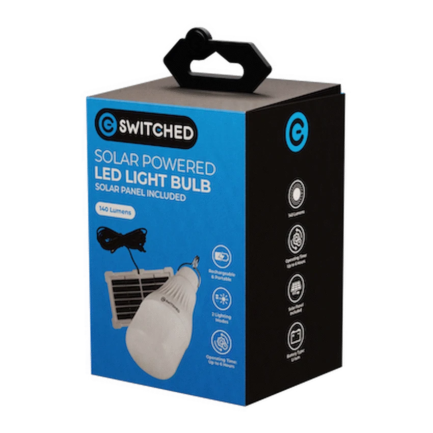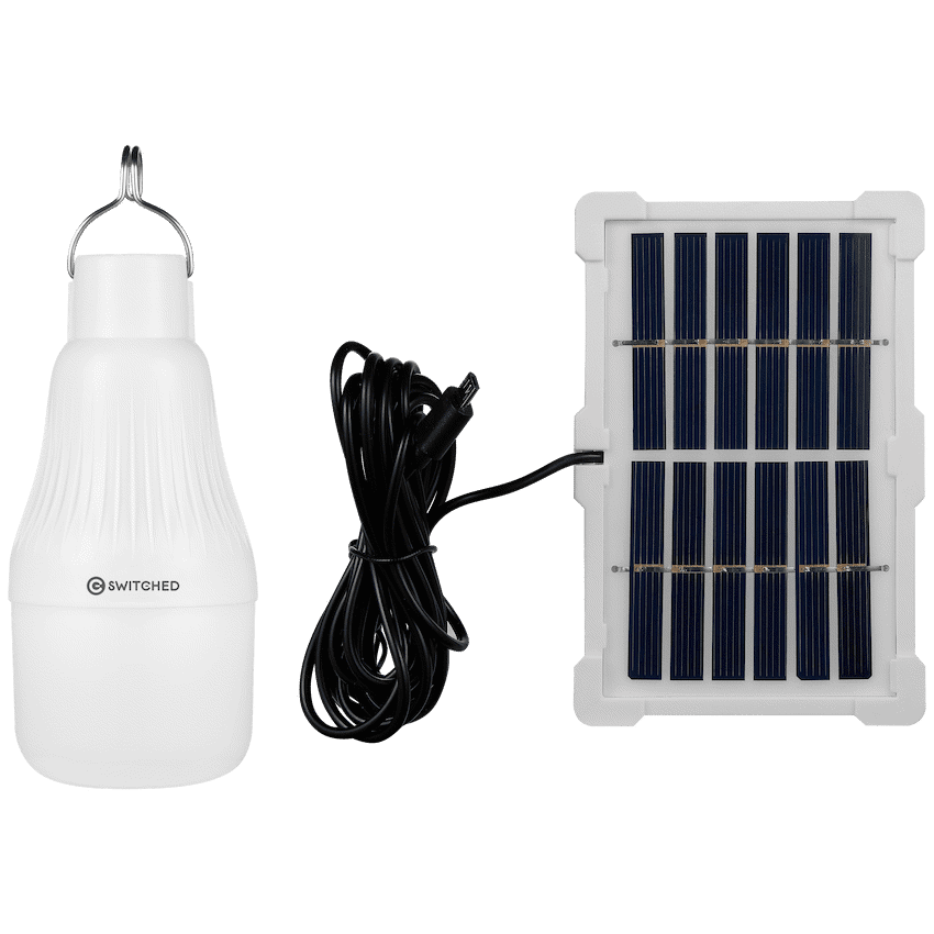 Enjoy portable, eco-friendly lighting anywhere with the Switched Solar-Powered LED Light Bulb with Solar Panel, a compact and reliable solar light bulb designed for both indoor and outdoor use. Perfect for camping, load-shedding, or off-grid setups, it provides bright illumination without relying on mains power.This solar-powered light South Africa comes with a 6V 1.2W solar panel that fully charges the built-in 800mAh lithium battery in 6-10 hours, offering up to 6 hours of light on a full charge. It also supports dual charging via solar or Micro USB (AC), giving you flexible power options wherever you are.Featuring auto power failure detection, the light turns on automatically during blackouts, while the metal hanging hook makes it easy to suspend in tents, garages, or patios. Compact, rechargeable, and built to last, this Switched solar light is your all-purpose lighting companion for home or travel.