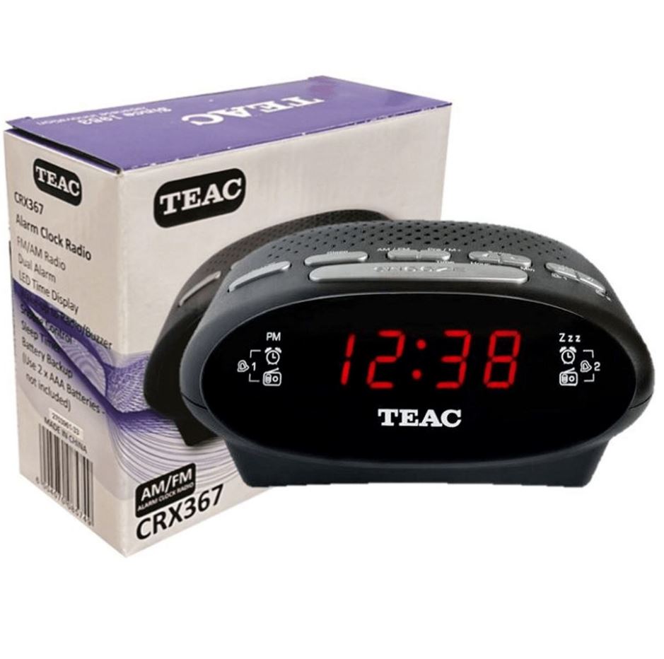 The TEAC CRX-367 is a compact bedside alarm clock radio designed for straightforward daily use. It features an easy-to-read red LED digital display (with dimmer control) and a dual alarm system so you can set two separate wake-up times. You can wake to either a buzzer or your preferred AM/FM radio station, with snooze and sleep timer functions for added convenience.