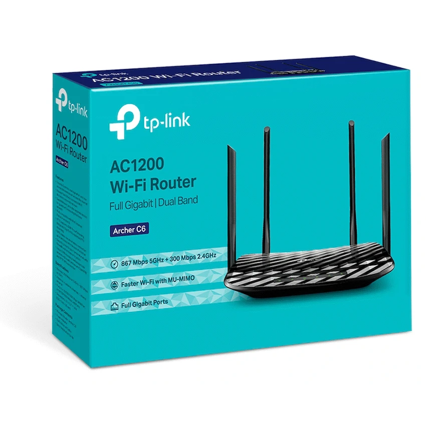 The TP-Link Archer C6 AC1200 Dual-Band Wi-Fi Router is a powerful and affordable networking solution designed to deliver fast, stable, and secure wireless connectivity for homes and small offices. Built on the reliable 802.11ac Wi-Fi standard, this router offers enhanced speed, broader coverage, and improved efficiency – making it ideal for HD streaming, online gaming, video conferencing, and everyday browsing.With dual-band functionality, the Archer C6 provides combined wireless speeds of up to 1200 Mbps – 867 Mbps on the 5 GHz band and 300 Mbps on the 2.4 GHz band. This allows users to assign high-bandwidth tasks like streaming and gaming to the faster 5 GHz band, while reserving the 2.4 GHz band for basic activities such as browsing, emailing, and smart home device connectivity. The result is a smoother, more responsive network experience with reduced interference and congestion.