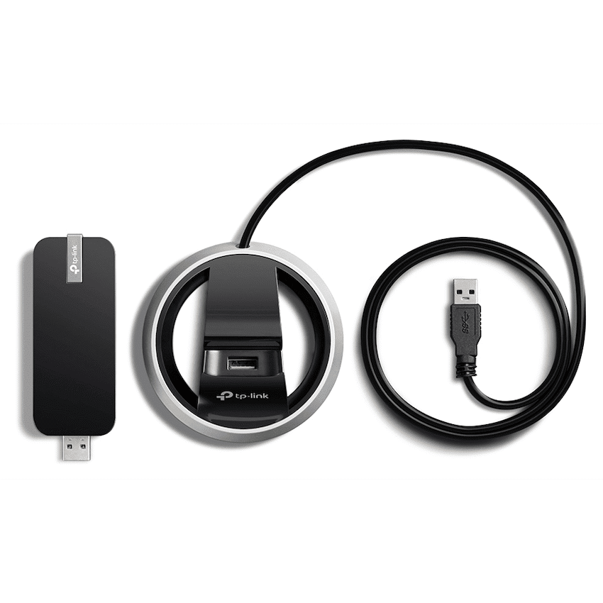 TP-Link Archer T9UH AC1900 High Gain Wireless Dual Band USB AdapterUltimate Wi-Fi Speed- AC1900 (600Mpbs on 2.4GHz band or 1300Mbps on 5GHz band) wireless speed with the next generation Wi-Fi – 802.11acDual Band Wireless- 2.4GHz and 5GHz band for flexible connectivityUltimate Range – High gain antennas ensure superior range and stabilityBeamforming Technology – Delivers a more targeted and highly efficient wireless connectionsSuper Speed USB 3.0 Port – Up to 10x faster than USB 2.0Flexible Deployment – Equipped with a USB 3.0 Cradle for flexible deploymentWPS Button – Easy wireless security encryption at a push of the WPS buttonBackward Compatibility – With support for 802.11 a/b/g/n standardsSupporting System – Windows 10/8.1/8/7/XP, Mac OS X