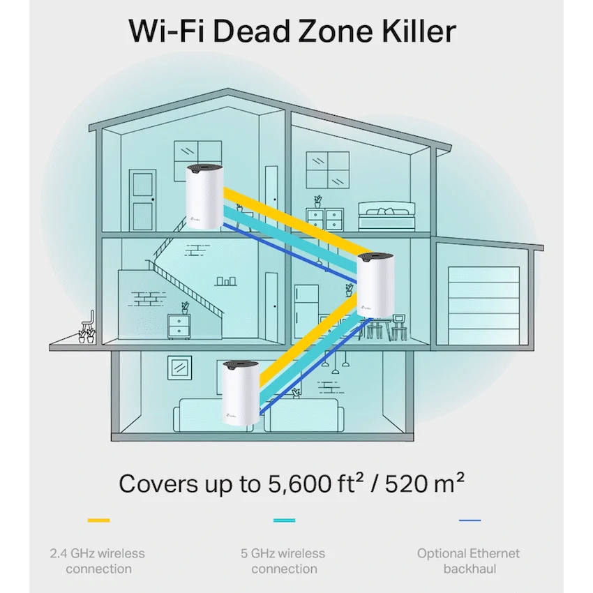 TP-Link Deco S7(3-Pack) AC1900 Whole Home Mesh Wi-Fi System1900 Mbps WiFi Speed – Enjoy binge watching your favorite series in 4K with combined speeds of up to 1900 Mbps (600 Mbps on 2.4 GHz and 1300 Mbps on 5 GHz ) with 3×3 MU-MIMO technology.+ ++Connect 100+ Devices – Deco handles traffic from even the busiest of networks, providing lag-free connections for over 100 devices.+Boosted Seamless Coverage – With advanced Deco Mesh Technology, units work together to form a unified network with a single network name. Devices automatically switch between Decos as you move through your home for the fastest possible speeds. SFull Gigabit Ethernet – 3x Gigabit WAN/LAN Ethernet ports provide solid internet access at high speeds.?Robust Parental Controls – Limit online time and block inappropriate websites according to unique profiles you create for each family member.Two Modes in One – Works as a router or access point for a flexible home network.Easy Setup – Setup is easier than ever with the Deco app there to walk you through every step.
