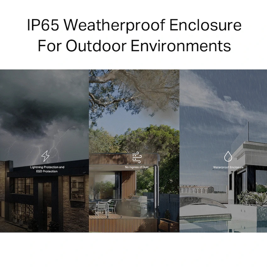 TP-Link Deco X50-Outdoor AX3000 Outdoor/Indoor Mesh Wi-Fi 6 UnitAX3000 Dual-Band Wi-Fi 6- Enjoy binge-watching your favorite series in 4K with combined speeds of up to 3000 Mbps (574 Mbps on 2.4 GHz and 2402 Mbps on 5 GHz )+Multiple mount options – Pole mount, wall mount, and tabletopWorking outdoor – Industry-leading IP65 dust & water resistance*Powered over Ethernet – Provide both data connection and electric power with a single cableFull Gigabit Ethernet – 2 x Gigabit WAN/LAN Ethernet ports provide solid internet access at high speeds.SWork With All Decos – Compatible with every other Deco model to form a Mesh network.TP-Link HomeShield – Provides comprehensive network protection, robust parental controls, and real-time**