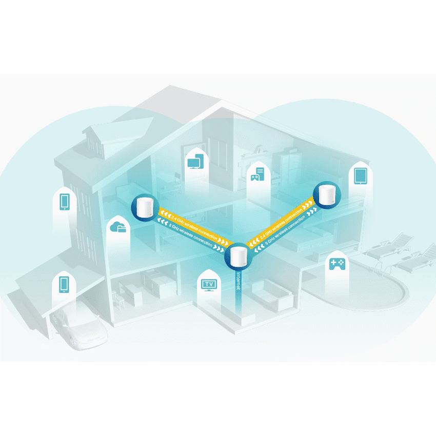 TP-Link Deco X60(3-Pack) AX5400 Whole-Home Mesh Wi-Fi 6 System(Tri-Band)Faster Connections: Wi-Fi 6 speeds up to 5,400 Mbps-4,804 Mbps on 5 GHz and 574 Mbps on 2.4 GHz.Connect More Devices: OFDMA and MU-MIMO technology quadruple capacity to enable simultaneous transmission to more devices.Boosted Seamless Coverage: Achieve seamless whole-home coverage with a clearer and stronger whole-home Wi-Fi signal generated by Wi-Fi 6.Ultra-Low Latency: Greater reduction in latency enables more responsive gaming and video chatting.One Unified Network: Multiple units form a whole-home network that auto-selects the best connection as you move around your home.Total Security: WPA3 encryption and TP-Link HomeShield provide personalized features, including Parental Controls, Antivirus, and Quality of Service (QoS) to ensure a safer online experience.TP-Link HomeShield: Keeps your home network safe with cutting-edge features for network and IoT protectionSetup Made Easier Than Ever: The Deco app walks you through the setup step-by-step.