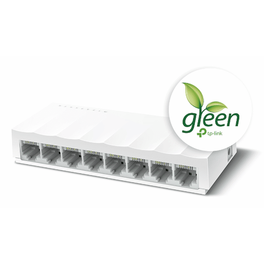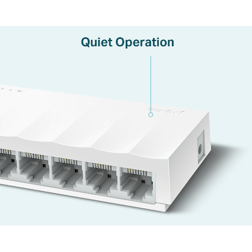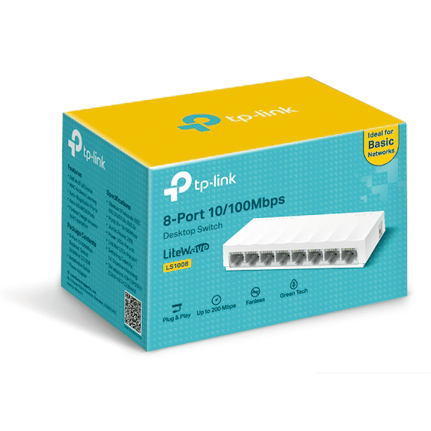 The TP-Link LS1008 8-Port 10/100Mbps Desktop Switch is a reliable and energy-efficient networking solution designed to expand wired connectivity in homes, small offices, classrooms, and SOHO environments. Part of TP-Link’s LiteWave Series, this unmanaged switch offers simple plug-and-play operation with stable performance – perfect for users who need to connect multiple Ethernet-enabled devices without complex setup.Equipped with eight 10/100Mbps RJ45 ports, the LS1008 enables seamless data transfer between computers, printers, IP cameras, smart TVs, and other wired devices. Each port supports Auto-Negotiation and Auto MDI/MDIX, eliminating the need for crossover cables and allowing for flexible deployment.Its fanless design ensures silent operation, making it ideal for noise-sensitive environments such as libraries, studios, and home offices. The compact desktop form factor allows for easy placement on desks, shelves, or tight spaces, while the durable plastic housing ensures long-term reliability.