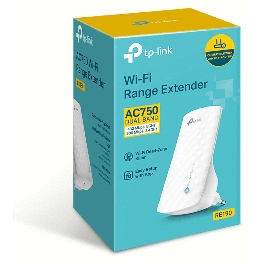 Expand your Wi-Fi coverage and get rid of dead zones with the TP-Link RE190 AC750 Wi-Fi Range Extender. Designed to work with any standard router, this extender delivers dual-band Wi-Fi speeds up to 750Mbps-perfect for smooth streaming, gaming, browsing, and video calls across your home.With smart signal indicator lights, finding the best placement is simple, ensuring maximum coverage and stable connections. The RE190 supports Access Point mode, allowing you to create a new Wi-Fi hotspot by plugging in an Ethernet cable-ideal for upgrading wired networks to wireless.Setup is quick and hassle-free with the TP-Link Tether app, giving you full control from your smartphone. Its compact wall-plug design makes it easy to install without clutter, blending seamlessly into any home or office environment.Stay connected in every room-the RE190 ensures fast, reliable Wi-Fi where you need it most.