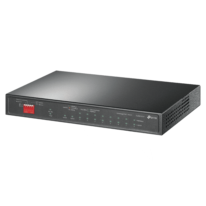 TP-Link TL-SG1210P 10-Port Gigabit Desktop Switch with 8-Port PoE+9 10/100/1000Mbps RJ45 ports, 1 Gigabit SFP portWith 8 PoE+ ports, transfers data and power on one single cableWorks with IEEE 802.3af/at compliant PDs and expands office network802.1p/DSCP QoS enable smooth latency-sensitive trafficHigh PoE power budget with up to 30W for each PoE port and 63W for all PoE portsUp to 250 m data and power transmission range under Extend Mode**Priority Mode ensures high priority of ports 1-2 to guarantee the quality of the sensitive applicationsIsolation Mode allows one-click client traffic separation for higher security and performanceAutomatically reboots your dropped or unresponsive PoE-powered devices with PoE Auto RecoveryEasy to use, with no configuration and installation needed