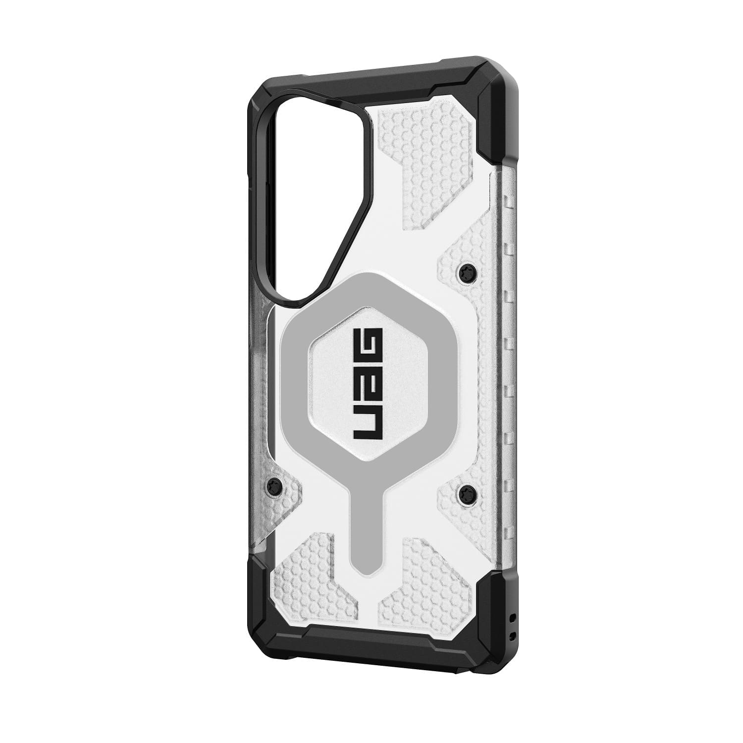 The Pathfinder Clear Galaxy S26 Ultra Case offers the trusted protection of the Pathfinder Series with a clear design, allowing you to showcase the color of your new device. Featuring an ultra-lightweight armor shell, an impact-resistant frame, and a hex pattern core to provide superior drop and shock protection. The raised perimeter screen surround shields your display from accidental drops and impacts, while tough TPU bumpers offer added corner protection. Our integrated magnet module locks your device securely in place when using wireless chargers or other magnetic accessories