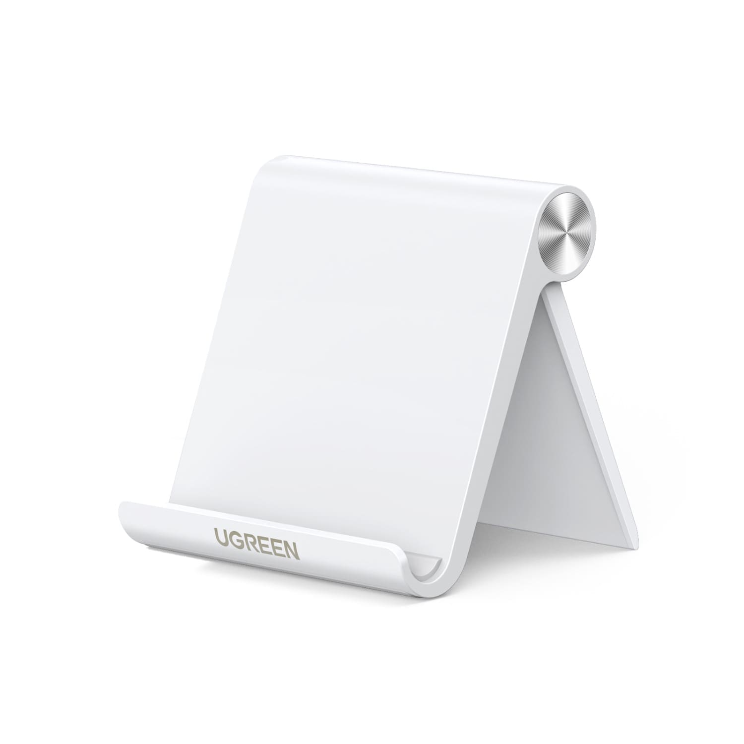 UGREEN folding phone stand provides a safe and secure mount for your smartphones vertically or horizontally. Now it is time to give your hands a break, and enjoy videos, reading, facetime calls, browsing the web and more. Durable hinge rotates 100 degrees for the best viewing position. Silicone pads on the bottom and cradle protect your phone and the stand from sliding and scratches.
