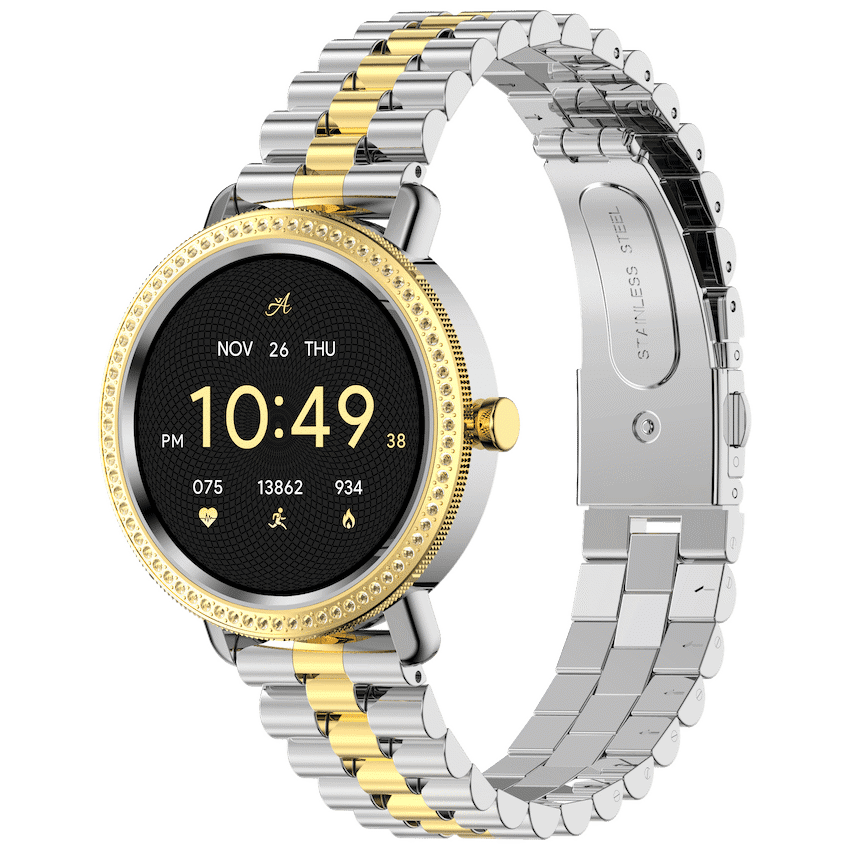 Volkano Ayla Collection Jewelled Smartwatch With 2 Colour Metal link strap